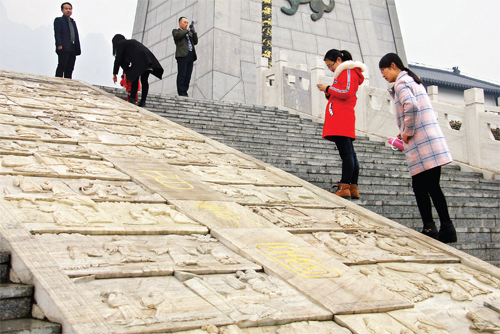 2月11日,原平市天牙山景區(qū)忠孝臺(tái)前,游人正在看忠孝雕刻,讀古典忠孝故事,接受忠孝文化再教育。天牙山以“忠孝”主題聞名,很多鮮活動(dòng)人的忠孝故事都能從這里尋覓,成為公眾接受忠孝文化的旅游地。(吉建平 攝)