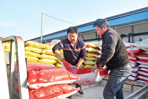 2月29日,原平市農(nóng)業(yè)科技園區(qū)工作人員正在為種子銷售點(diǎn)運(yùn)送化肥。目前,該市村民積極投入到春耕備耕中,及早動(dòng)手購化肥、備農(nóng)資,為春耕打好基礎(chǔ)。(褚震 攝)
