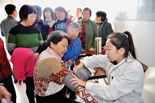 3月7日上午,代縣團縣委在上館鎮(zhèn)橙草溝村舉行“傳承雷鋒精神,投身脫貧攻堅”志愿服務活動啟動儀式,旨在動員全縣各級團組織和廣大團員青年開展為期一個月的以“傳承雷鋒精神,投身脫貧攻堅”為主題的“送溫暖、獻愛心”、“送金融”、“送科技”、“送文明健康”系列學雷鋒志愿服務活動。啟動儀式現(xiàn)場,共收到全縣捐贈的課桌凳1900套、圖書1126冊、文具320件、衣物1063件、書包33個、體育用品14件,將分發(fā)到貧困地區(qū)農村和學校。圖為志愿者為民群眾義診。(石俊文 攝)