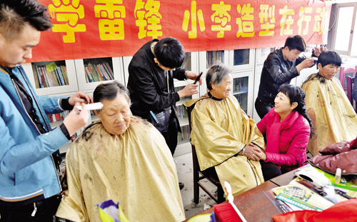 3月9日,在定襄縣蔣村鄉(xiāng)上東留村委會(huì),剛剛理完發(fā)的梁大娘動(dòng)情地拉著該村第一書記張瑞蓮的手連夸:“好書記,好閨女!”張瑞蓮是由定襄縣委組織部下派到農(nóng)村任職的干部,今年以來她牽頭為村民辦了許多實(shí)事。當(dāng)日,她主動(dòng)聯(lián)系了縣城小李造型學(xué)雷鋒小組的5名理發(fā)師,免費(fèi)為全村70多名老年人理了發(fā)。(張晉蘭 攝)