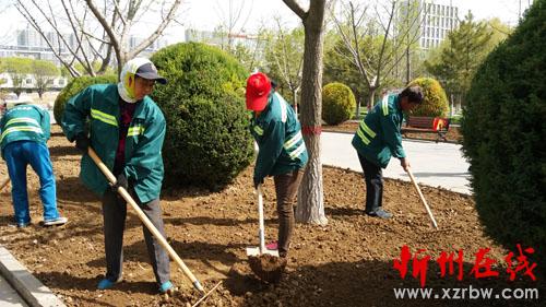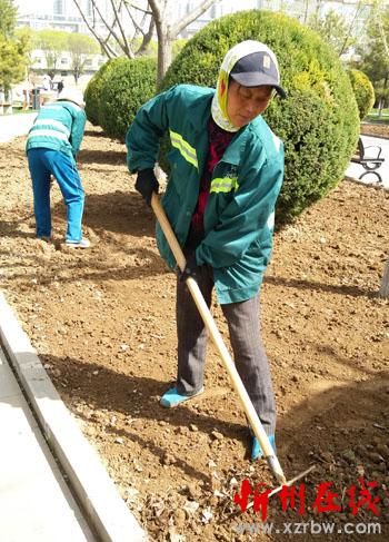 春暖花開,4月13日,忻州市人民公園的園林養(yǎng)護(hù)人員忙著翻地、施肥,為不同花期的育苗做準(zhǔn)備。忻州市人民公園是我市城市文明的一大場(chǎng)所,為全方位提升人均環(huán)境質(zhì)量和城市競(jìng)爭(zhēng)力,給廣大市民創(chuàng)造一個(gè)文明、衛(wèi)生、安全、和諧的休閑游樂環(huán)境,園林養(yǎng)護(hù)人員一年四季不斷地為公園綠化服務(wù),確保公園內(nèi)的花、草、樹都能如期開花、結(jié)果。(李濤 攝)