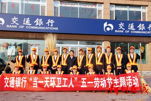 為表達(dá)對辛勤工作的勞動(dòng)者——城市環(huán)衛(wèi)工人的尊重和敬意,在五一國際勞動(dòng)節(jié)到來之際,交通銀行忻州分行營業(yè)部舉行了“ 當(dāng)一天環(huán)衛(wèi)工人”主題活動(dòng)。圖為活動(dòng)結(jié)束后的合影。(鄭玉蘭 攝)
