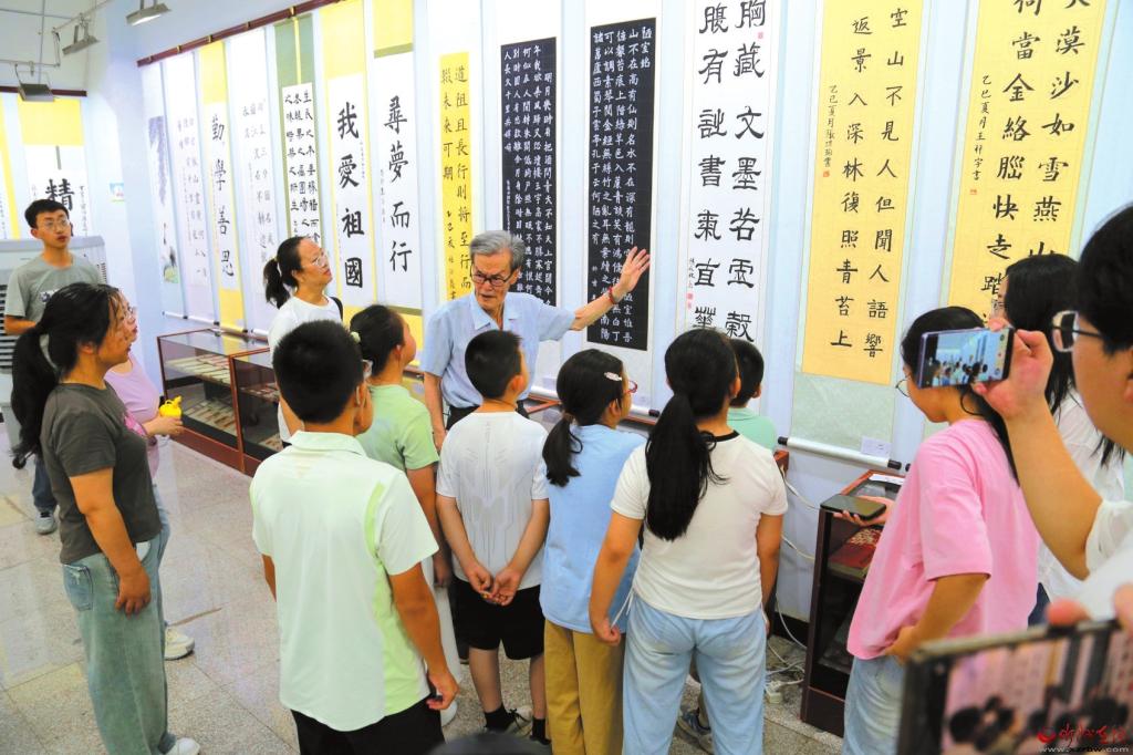 展廳里墨香四溢、丹青煥彩,一幅幅作品吸引著參觀者駐足欣賞。剛上初中的邵琢雯站在自己的作品《世外桃源》前,難掩自豪地說(shuō):“我想通過(guò)畫筆展現(xiàn)家鄉(xiāng)的懸空村美景。這幅畫我畫了整整兩個(gè)月,運(yùn)用了傳統(tǒng)山水畫技法,從構(gòu)思到落筆改了好幾次。繪畫讓我更深刻地感受到家鄉(xiāng)山水的魅力。”
