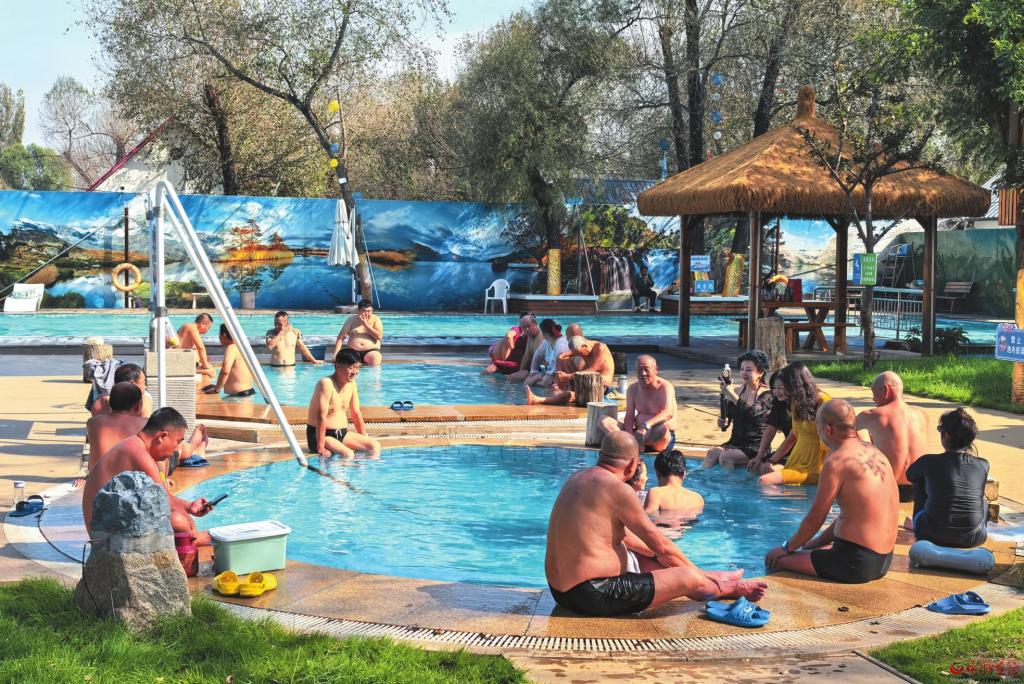 忻府區(qū)溫泉憑借其豐富的地?zé)豳Y源優(yōu)勢(shì)和優(yōu)美的自然環(huán)境,吸引了各地游客慕名而來。圖為游客在忻府區(qū)北合索溫泉康養(yǎng)小鎮(zhèn)享受悠閑時(shí)光。(記者 張存良攝