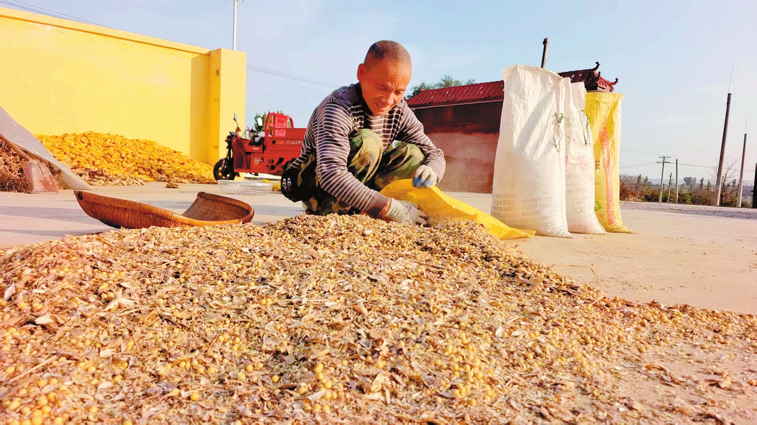 近日,河曲縣唐家會(huì)村的村民們正晾曬收獲的黃豆,確保顆粒歸倉(cāng)。(