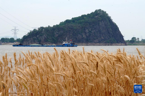 5月13日,貨輪行駛在天門山旁的長(zhǎng)江航道中。(新華社記者 馬寧 攝)