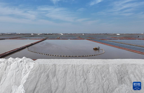 近日,河北省唐山市曹妃甸區(qū)南堡鹽場的35萬畝鹽田迎來春鹽收獲期,工人利用晴好天氣加緊收獲,鹽田里到處是繁忙工作景象。據(jù)介紹,南堡鹽場是我國長蘆鹽區(qū)海鹽生產(chǎn)基地之一,當(dāng)?shù)匾劳宣}資源豐厚優(yōu)勢,大力發(fā)展鹽化工產(chǎn)業(yè),助推經(jīng)濟(jì)發(fā)展。