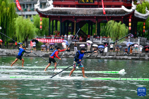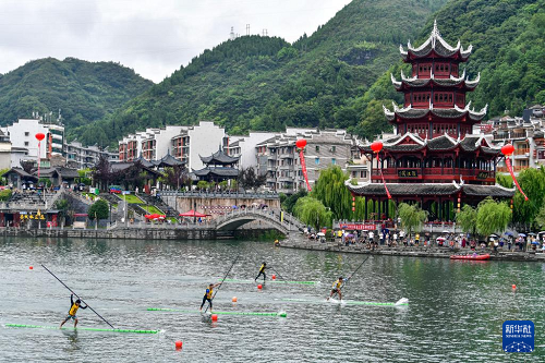 7月22日至23日,2025年民體杯全國(guó)獨(dú)竹漂比賽在貴州省黔東南苗族侗族自治州鎮(zhèn)遠(yuǎn)古城舉行。來(lái)自浙江、湖北、廣西、廣東、貴州等省區(qū)的10支獨(dú)竹漂代表隊(duì)參加比賽。