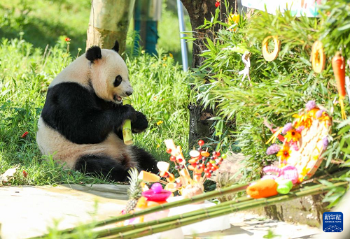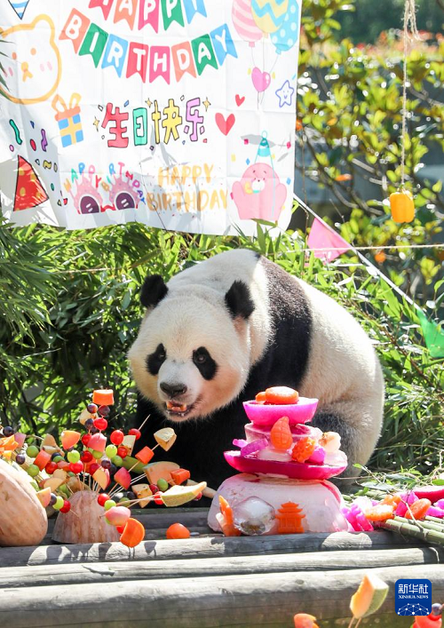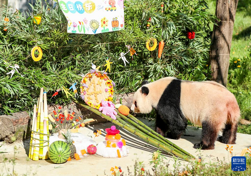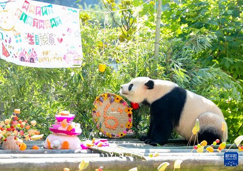 7月27日,大熊貓“林溪”“一家”在四川省廣安市華鎣山熊貓?jiān)?,分別迎來(lái)4歲和6歲生日,飼養(yǎng)員為它倆舉行了一場(chǎng)別開(kāi)生面的生日會(huì)。