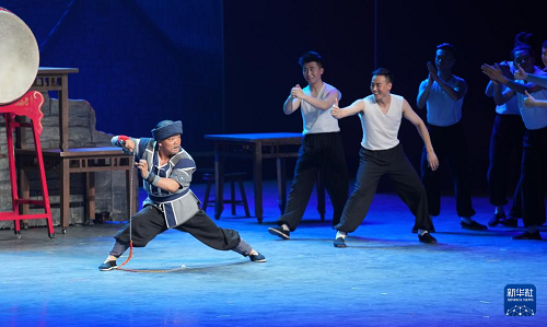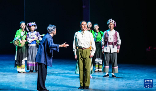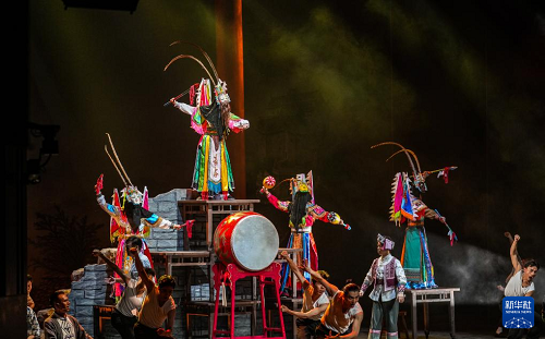 演員在貴州飯店國際會議中心表演民族歌舞劇《山河同心》(7月30日攝)。(新華社記者 陶亮 攝)