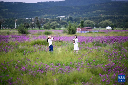 8月3日,游客在呼和浩特市敕勒川草原拍照。(新華社記者 李志鵬 攝)
