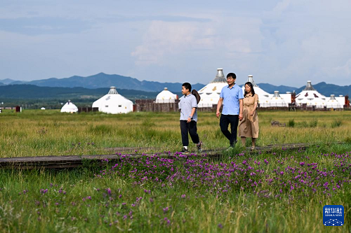 8月3日,游客在呼和浩特市敕勒川草原游玩。(新華社記者 李志鵬 攝)