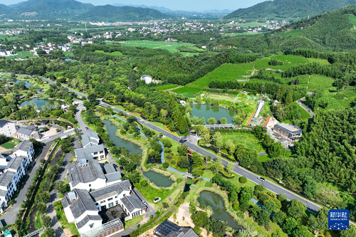 這是8月5日拍攝的浙江省杭州市余杭區(qū)徑山村景色(無人機照片)。(新華社記者 毛竹 攝)