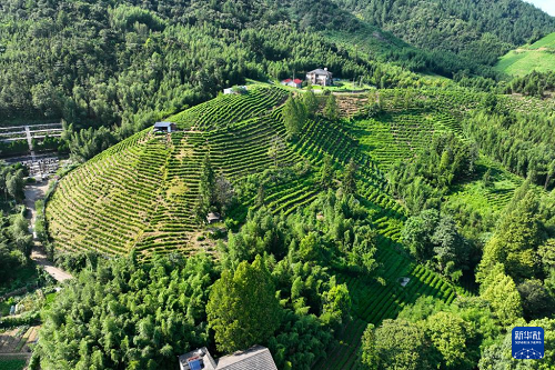 這是8月5日拍攝的浙江省杭州市余杭區(qū)徑山村茶山(無人機照片)。(新華社記者 毛竹 攝)