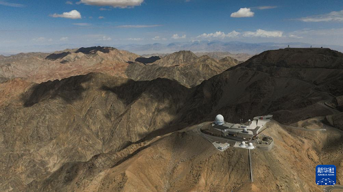 這是7月29日在冷湖鎮(zhèn)賽什騰山拍攝的中國(guó)科學(xué)技術(shù)大學(xué)和中國(guó)科學(xué)院紫金山天文臺(tái)聯(lián)合研制的大視場(chǎng)光學(xué)成像望遠(yuǎn)鏡——墨子巡天望遠(yuǎn)鏡(無人機(jī)照片)。(新華社記者 張龍 攝)