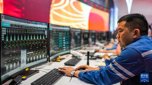 工作人員在國家電投貴州金元平遠電廠查看發(fā)電設施運轉情況(8月5日攝)。(新華社記者 陶亮 攝)