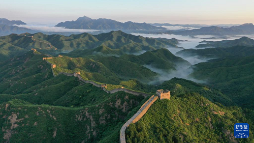 這是8月14日在河北省承德市灤平縣拍攝的長(zhǎng)城云海景觀(無(wú)人機(jī)照片)。(新華社發(fā) 周萬(wàn)平 攝)