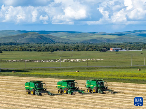 近日,位于內(nèi)蒙古呼倫貝爾市額爾古納市的呼倫貝爾農(nóng)墾拉布大林農(nóng)場19.22萬畝小麥迎來豐收季,當(dāng)?shù)剞r(nóng)民搶抓農(nóng)時(shí),以大規(guī)模機(jī)械化的方式開展收割、晾曬作業(yè)。