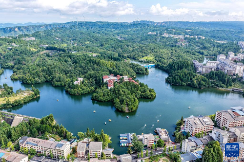 這是8月20日拍攝的重慶市石柱縣黃水鎮(zhèn)景色(無人機照片)。(新華社記者 唐奕 攝)