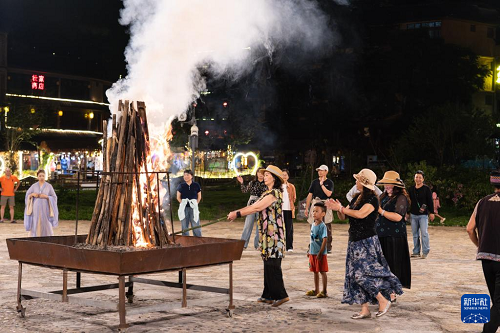 8月24日,游客在云南省廣南縣壩美村參加篝火晚會(huì)。(新華社記者 高詠薇 攝)