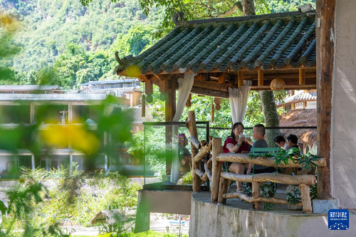 8月25日,游客在云南省廣南縣壩美村一家咖啡館內(nèi)休閑。(新華社記者 高詠薇 攝)