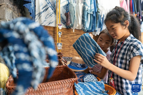 8月25日,游客在云南省廣南縣壩美村了解扎染手工藝品。(新華社記者 高詠薇 攝)
