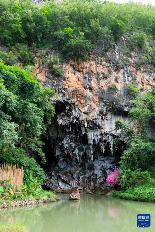 8月25日,游客乘船進(jìn)入云南省廣南縣壩美村。(新華社記者 高詠薇 攝)
