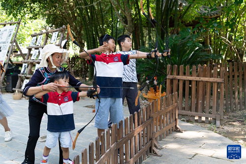 8月24日,游客在云南省廣南縣壩美村體驗(yàn)射箭。(新華社記者 高詠薇 攝)