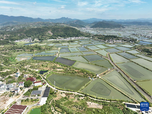 鳥瞰寧??h一市鎮(zhèn)的蟹塘(9月2日攝,無人機(jī)照片)。(新華社記者 翁忻旸 攝)