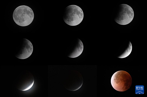 這是月全食過程(拼版照片,9月7日至8日攝)。(新華社記者 姜帆 攝)