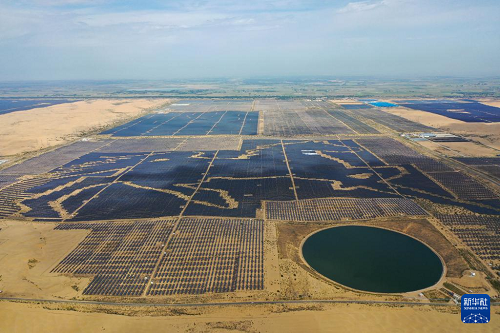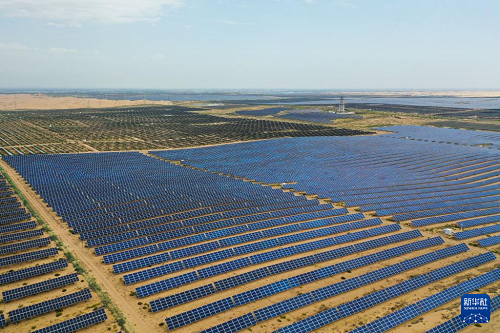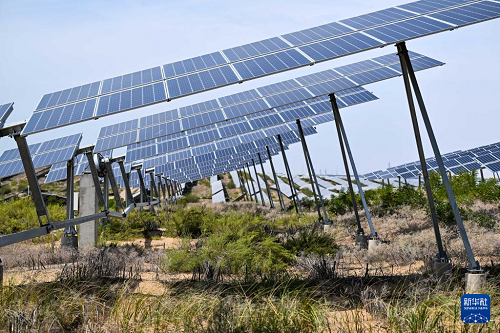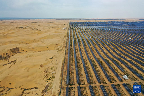 內蒙古鄂爾多斯市達拉特旗境內的庫布其沙漠里,一塊塊藍色光伏板鱗次櫛比、鋪陳排開,將沙海變成綠能涌動的“藍?!薄=陙?,達拉特旗依托光伏基地建設,推廣應用“光伏治沙”模式,實現(xiàn)光伏板上發(fā)綠電,板下治理沙漠生態(tài),既帶動新能源產業(yè)發(fā)展,也促進庫布其沙漠治理。