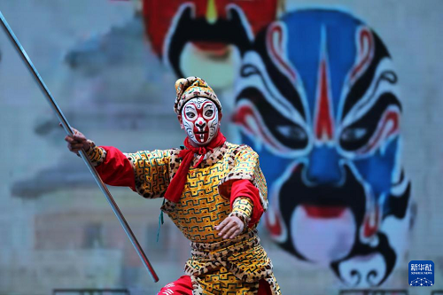 9月13日晚,在定西市隴中許鐵堂秦腔劇院,演員表演秦腔絕活“吹火”。(新華社發(fā) 王克賢 攝)