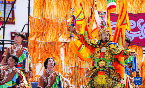 這是9月15日拍攝的開(kāi)幕式上的格薩爾王舞蹈表演。(新華社記者 格桑朗杰 攝)