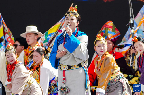 這是9月15日拍攝的開(kāi)幕式上的女聲獨(dú)唱《藏東明珠》。(新華社記者 格桑朗杰 攝)