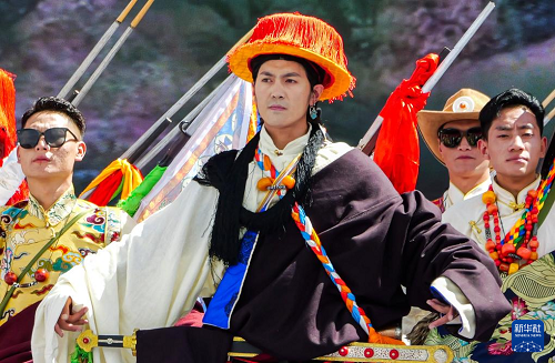 這是9月15日拍攝的開(kāi)幕式上的傳統(tǒng)服飾秀。(新華社記者 格桑朗杰 攝)