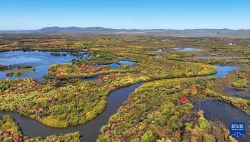 時下,內蒙古額爾古納濕地迎來秋日盛景,多彩的灌木叢點綴其間,蜿蜒的河流如藍絲帶般靜靜流淌,宛若大自然打翻的調色盤。