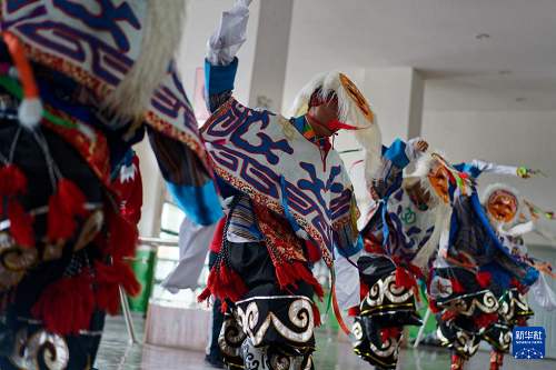 9月9日,在拉薩市第二中等職業(yè)技術學校,學生們在練習藏戲。(新華社記者 張笑宇 攝)