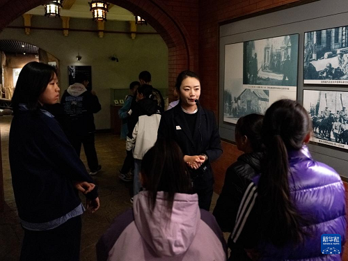 9月18日,在內(nèi)蒙古呼倫貝爾市,講解員為參觀世界反法西斯戰(zhàn)爭(zhēng)海拉爾紀(jì)念園的小學(xué)生講解。(新華社記者 馬金瑞 攝)