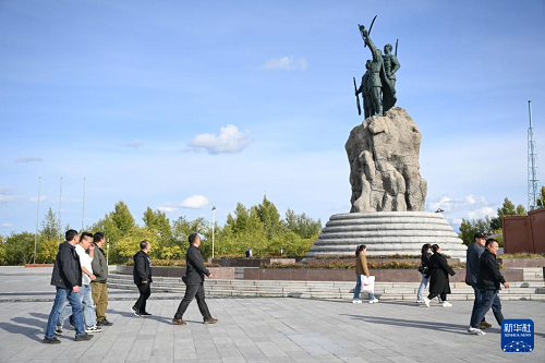 9月18日,人們?cè)趦?nèi)蒙古呼倫貝爾市海拉爾區(qū)世界反法西斯戰(zhàn)爭(zhēng)海拉爾紀(jì)念園參觀。(新華社記者 貝赫 攝)