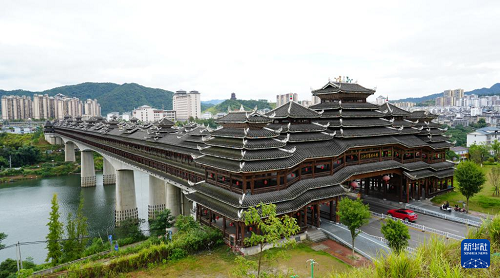 這是9月25日拍攝的三江侗族自治縣的宜陽風(fēng)雨橋。該橋橫跨潯江之上,全長(zhǎng)399.6米,寬28米。橋面設(shè)雙向四車道,橋上共兩層,二層建有跨橋人行通道。(新華社記者 張楓 攝)