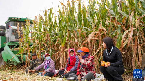 10月9日,韓鳳香來到玉米地查看秋收情況。(新華社記者 顏麟蘊(yùn) 攝)