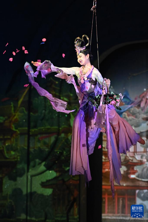 10月12日,演員在《樂動敦煌》中表演。(新華社記者 范培珅 攝)