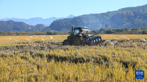 12月7日,云南省騰沖市和順鎮(zhèn)大莊村農(nóng)民駕駛農(nóng)機翻耕稻田,準(zhǔn)備種植冬季馬鈴薯。(新華社發(fā) 龔祖金 攝)