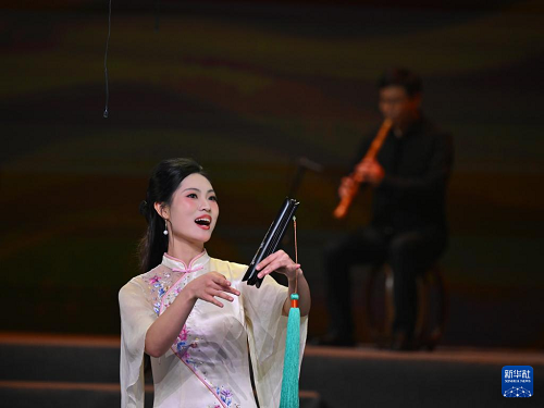 12月10日,南音社團(tuán)代表在“南音薪傳 四海弦歌”專場(chǎng)演出上演唱《遠(yuǎn)望鄉(xiāng)里》。(新華社記者 姜克紅 攝)