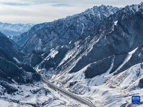這是新疆烏尉高速公路前峽1號隧道及附近路段(12月20日攝,無人機照片)。(新華社記者 胡虎虎 攝)