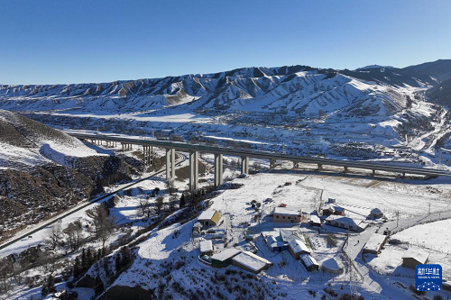 在新疆烏魯木齊縣拍攝的烏尉高速公路(12月23日攝,無人機照片)。(新華社記者 王菲 攝)