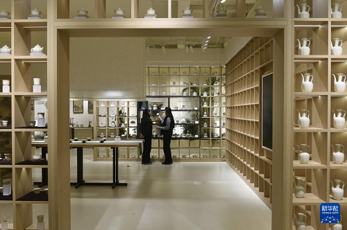 這是12月25日在河北省曲陽(yáng)縣拍攝的一家定瓷生產(chǎn)企業(yè)的展廳。(新華社記者 魯鵬 攝)