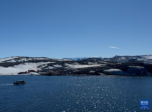 12月29日在秦嶺站海域拍攝的“雪龍”號極地科考破冰船。(新華社記者 顧天成 攝)