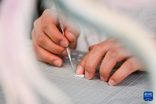 糖藝師張勃在制作糖藝裝飾零部件(1月13日攝)。(新華社記者 鄒競一 攝)