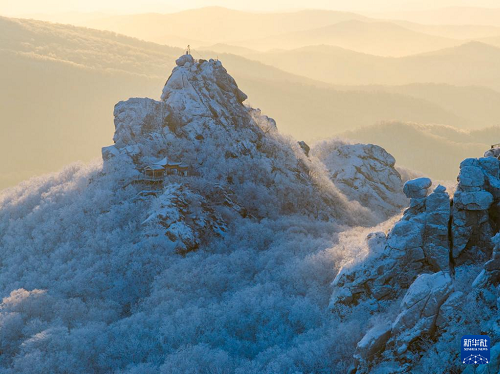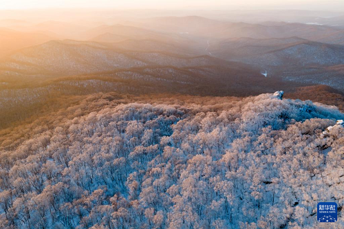 1月25日晨,位于黑龍江省雙鴨山市境內(nèi)的黑龍江七星山國家森林公園出現(xiàn)霧凇景觀,朝暉映射下,霜華滿山,蔚為壯觀。